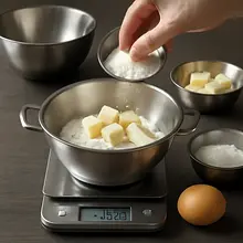 Mąka pszenna, Masło, Cukier puder, Jajko, Proszek do pieczenia