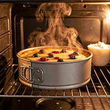 Po upieczeniu wyłącz piekarnik. Przy uchylonych drzwiczkach pozostaw sernik w piekarniku na 30 minut — pozwoli to mu stopniowo się ochłodzić i zmniejszy ryzyko pęknięć. Wyjmij z piekarnika, wyjmij z kąpieli wodnej, ostudź do temperatury pokojowej, następnie wstaw do lodówki na minimum 1 godzinę (najlepiej 2–4 godziny).