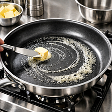 Użyj średniego ognia: za gorąco spalisz naleśniki, za zimno będą gumowate. Do smażenia najlepiej użyć patelni z powłoką nieprzywierającą. Posmaruj masłem przed każdą porcją, jeśli chcesz złotego koloru.