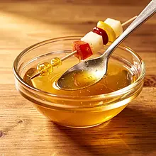 W małej miseczce połącz sok z cytryny (30 ml) z miodem (40 g). Wymieszaj łyżeczką aż powstanie jednolita, lejąca glazura. Spróbuj i dopasuj smak: jeśli miód jest bardzo słodki, dodaj jeszcze kilka kropli soku z cytryny. Glazura powinna być dość płynna, by łatwo pokryć owoce widelcem.