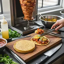 Tacos al Pastor to prawdziwa perła meksykańskiej kuchni ulicznej, danie o fascynującej historii i eksplozji smaków. Jego korzenie sięgają lat 30. XX wieku, kiedy to libańscy imigranci przywieźli do Meksyku tradycję przygotowywania shawarmy na pionowym rożnie. Meksykanie zaadaptowali tę technikę, zamieniając jagnięcinę na wieprzowinę i wzbogacając marynatę o lokalne składniki, takie jak papryczki chili i pasta achiote, która nadaje mięsu charakterystyczny, głęboki czerwony kolor. Kluczowym elementem jest ananas, którego sok nie tylko marynuje i zmiękcza mięso, ale także dodaje słodyczy, idealnie równoważąc pikantne i dymne nuty. W naszym przepisie soczysta, cieniutko krojona łopatka wieprzowa marynuje się przez kilka godzin w aromatycznej mieszance, a następnie jest grillowana do perfekcji. Podawana na ciepłych, kukurydzianych tortillach z kawałkami karmelizowanego, grillowanego ananasa, świeżą kolendrą, chrupiącą cebulką i orzeźwiającą, domową salsą verde. To danie to festiwal tekstur i smaków – idealne na letnie grillowanie lub spotkanie z przyjaciółmi.