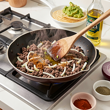 Przygotuj awokado: przetnij każde awokado wzdłuż wokół pestki, skręć połówki, wyjmij pestkę łyżką. Łyżką wyjmij miąższ do średniej miski. Dodaj sok z 1 limonki (ok. 30 g soku) oraz 1/2 łyżeczki soli (ok. 1 g) i 1 szczyptę pieprzu. Drobno posiekaj 1/2 czerwonej cebuli (ok. 75 g), 1 ząbek czosnku (5 g) i 1/2 pęczka kolendry (ok. 15 g) i dodaj do miski. Rozgnieć wszystko widelcem na konsystencję z lekkimi kawałkami (nie całkowicie gładkie). Jeśli masa jest bardzo gęsta, wymieszaj 60 g jogurtu naturalnego, aby uzyskać kremowość.