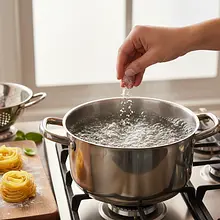 W dużym garnku (minimum 4-5 litrów) zagotuj dużą ilość wody. Gdy woda zacznie wrzeć, dodaj solidną łyżkę soli. Wrzuć makaron tagliatelle i gotuj zgodnie z instrukcją na opakowaniu, ale o 1-2 minuty krócej, aby był 'al dente' (lekko twardy w środku). Zanim odcedzisz makaron, odlej i zachowaj około 1-2 szklanki wody, w której się gotował. Jest ona kluczowa do stworzenia kremowego sosu.