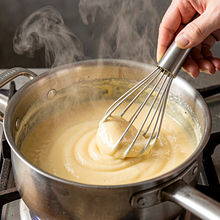 Gdy mleko jest gorące, wlej cienkim strumieniem 1/3 gorącego mleka do mieszanki jajecznej z cukrem, ciągle mieszając (temperowanie) — to zapobiegnie ścięciu jajek. Następnie wlej powrotnie całą zawartość do rondla i gotuj na małym ogniu, ciągle mieszając trzepaczką, aż masa zgęstnieje i zacznie bulgotać (2–3 minuty od momentu zagotowania). Zdejmij rondel z ognia i energicznie wmieszaj 30 g zimnego masła, aż się rozpuści i budyń będzie gładki. Przykryj powierzchnię budyniu folią spożywczą (przylegającą do masy), aby nie zrobił się kożuch, i odstaw do przestudzenia do temperatury pokojowej (ok. 20 minut).