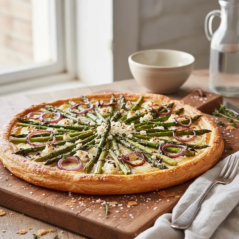 Ta wytrawna tarta to kwintesencja wiosny na talerzu. Jej sercem jest idealnie kruchy, maślany spód, który stanowi doskonałe tło dla bogactwa smaków nadzienia. Słodycz powoli karmelizowanej czerwonej cebuli z nutą octu balsamicznego idealnie komponuje się z lekko ziemistym, wyrazistym smakiem świeżych, zielonych szparagów. Całość dopełnia kremowa, aksamitna masa jajeczno-śmietanowa oraz charakterystyczna, lekko pikantna nuta rozpływającego się w ustach koziego sera. Tarta prezentuje się niezwykle apetycznie – złocisty spód, intensywna zieleń szparagów i fioletowe akcenty cebuli tworzą piękną mozaikę kolorów. To danie eleganckie, a jednocześnie proste w swojej istocie. Idealnie sprawdzi się jako danie główne na lekki obiad lub kolację w towarzystwie sałaty z winegretem, a także jako gwiazda stołu podczas brunchu czy spotkania z przyjaciółmi.