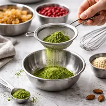 Odsyp 10 g matchy do małej miseczki i przesiej ją, aby nie było grudek. Dodaj 1 łyżeczkę (ok. 10 g) zimnej wody i rozetrzyj łyżeczką na gładką pastę. Delikatnie wmieszaj pastę matcha do masy serowej, a następnie delikatnie wmieszaj ubitą śmietankę techniką składania (składaj od dołu ku górze łyżką), aż krem będzie jednolity i puszysty.