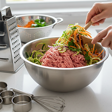 Zacznij od przygotowania warzyw. Marchewkę obierz za pomocą obieraczki do warzyw. Cukinię dokładnie umyj pod bieżącą wodą (jeśli jest młoda, nie musisz jej obierać). Zetrzyj oba warzywa na tarce o drobnych oczkach. Przełóż startą cukinię na sitko lub do dłoni i mocno odciśnij, aby pozbyć się nadmiaru wody. To bardzo ważny krok, inaczej masa na pulpety będzie zbyt rzadka.