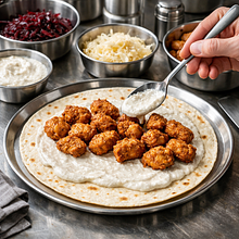 Przygotuj mięso: umyj pierś z kurczaka, osusz ręcznikiem papierowym. Pokrój wzdłuż na paski o szerokości ok. 1–1,5 cm (łatwiej je równomiernie usmażyć). W dużej misce połącz 200 g jogurtu naturalnego, 15 g musztardy, 15 g miodu, 10 g przeciśniętego przez praskę czosnku, 4 g papryki słodkiej, 2 g majeranku, 4 g soli i 2 g pieprzu. Dodaj 30 g oleju rzepakowego i dokładnie wymieszaj widelcem lub trzepaczką, aby powstała jednolita marynata.