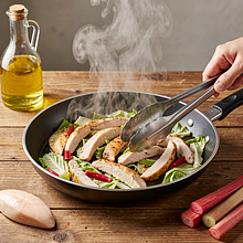 Szybkie i soczyste tortille z kawałkami przyprawionej piersi kurczaka, chrupiącą sałatą i kremowym sosem kefirowym z czosnkiem. Danie łączy polską świeżość sezonowej sałaty z lekko kwaskowym akcentem rabarbaru (opcjonalnie) — to prosty twist kuchni fusion, który daje przyjemny kontrast słodko-kwaśny do mięsnego smaku kurczaka. Tortille sprawdzą się jako przekąska na spotkanie ze znajomymi, szybki lunch czy lekka kolacja. Podawaj od razu po złożeniu, gdy kurczak jest gorący, a warzywa chrupiące — wtedy smak i tekstury są najlepsze. Estetycznie: przekręcone w kształt wrapa, przekrojone po skosie i podane na drewnianej desce z plasterkami cytryny i dodatkiem rabarbarowego chutney (jeśli użyjesz).
