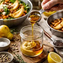 Użyj słoika z zakrętką do szybkiego emulgowania (łatwiejsze niż trzepaczka). Jeśli dressing się rozwarstwi, wstrząśnij ponownie tuż przed podaniem.