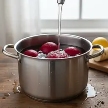 Gdy buraki będą miękkie, ostrożnie odlej gorącą wodę z garnka. Aby przyspieszyć proces studzenia, możesz zalać je zimną wodą i odstawić na 10-15 minut. Kiedy buraki przestygną na tyle, że można je utrzymać w dłoniach, obierz je ze skórki. Po ugotowaniu skórka powinna bardzo łatwo odchodzić – często wystarczy delikatnie ją zsunąć palcami.