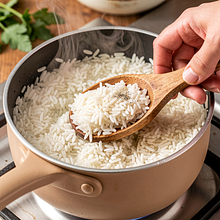 Użyj pokrywki dopasowanej do garnka. Ryż jest gotowy gdy ziarenka są miękkie, lekko klejące, ale nie papkowate. Jeśli zostanie trochę wody, odcedź przez sitko.