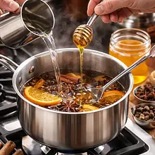Do garnuszka ze przyprawami wlej 200 ml wody i dodaj 80 g miodu. Podgrzewaj na średnim ogniu, mieszając drewnianą łyżką, aż miód całkowicie się rozpuści (ok. 3–5 minut). Po rozpuszczeniu zmniejsz ogień do małego i pozwól naparowi delikatnie pyrkać przez 8–10 minut — temperatura powinna być poniżej wrzenia (ok. 80–90°C). W trakcie gotowania kontroluj zapach: przyprawy powinny uwalniać intensywny, przyjemny aromat korzenny.