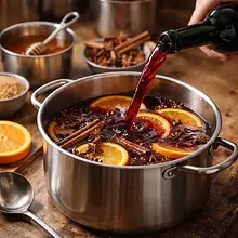 Jeśli przygotujesz więcej napoju niż potrzebujesz, schłodź przecedzone wino do temperatury pokojowej i przechowuj w szczelnie zamkniętym pojemniku w lodówce do 48 godzin. Przed ponownym podaniem podgrzej powoli na małym ogniu do 60–65°C — nie gotuj.