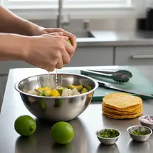 Dopraw ceviche solą i świeżo mielonym czarnym pieprzem. Zacznij od jednej łyżeczki soli i szczypty pieprzu, wymieszaj i spróbuj. W razie potrzeby dodaj więcej soli. Smak powinien być zbalansowany - wyraźnie kwaśny od limonki, ale też słony. Jeśli chcesz, teraz jest moment, aby dodać opcjonalną łyżkę oliwy z oliwek dla wzbogacenia smaku. Ponownie delikatnie wymieszaj.