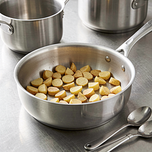 Wybierz ziemniaki podobnej wielkości. Jeśli używasz młodych ziemniaków, możesz zostawić skórkę — dokładnie wyszoruj je pod bieżącą wodą szczotką do warzyw. Jeśli ziemniaki są duże, przekrój je na równe półksiężyce o grubości 5-7 mm, aby smażyły się równomiernie.