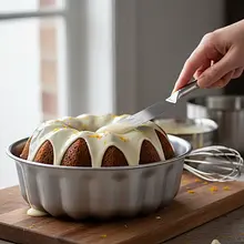 Wyjmij upieczony piernik z piekarnika i pozostaw w formie na 15 minut, aby lekko przestygł. Następnie ostrożnie wyjmij go z formy i przenieś na metalową kratkę do całkowitego wystudzenia. Ten proces może zająć 1-2 godziny. Piernik musi być absolutnie zimny przed nałożeniem polewy, w przeciwnym razie polewa spłynie.
