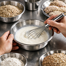 Lekka, chrupiąca i zdrowsza alternatywa dla tradycyjnej bułki tartej — panierka oparta na prażonej kaszy gryczanej, płatkach owsianych i mące z ciecierzycy. Ma więcej błonnika i białka niż klasyczna panierka oraz mniej przetworzonych składników. Idealna do panierowania piersi z kurczaka, fileta rybnego, plastrów selera i kalafiora lub do kotletów warzywnych. Po usmażeniu lub upieczeniu otrzymamy złocistą, orzechową skórkę o nutach prażonej gryki, delikatnym serowym posmaku i lekkiej ostrości papryki. Podawać z cytryną, natką pietruszki lub lekkim sosem jogurtowo-cytrynowym; sprawdza się na obiad, kolację i podczas grillowania.