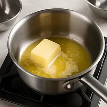 Roztop masło w naczyniu na małym ogniu lub w mikrofalówce (krótkie 20‑30 sekundowe interwały), aż stanie się płynne, ale nie gorące. Wlej roztopione masło do okruchów herbatnikowych i wymieszaj drewnianą łyżką lub silikonową szpatułką, aż wszystkie okruchy będą równomiernie wilgotne i zaczynają się lekko sklejać.