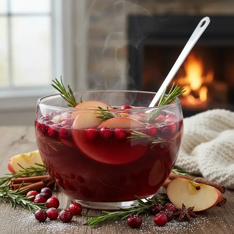 Aromatyczny, rozgrzewający poncz, który jest kwintesencją zimowego wieczoru. To bezalkoholowy napój o głębokiej, rubinowej barwie, łączący w sobie słodycz naturalnego soku jabłkowego z cierpkością żurawiny. Całość jest misternie doprawiona korzennymi przyprawami takimi jak cynamon, goździki i anyż, które wypełniają dom świątecznym zapachem. Niespodziewanym, ale idealnie pasującym akcentem jest świeży rozmaryn, dodający subtelnej, leśnej nuty. Poncz jest nie tylko pyszny, ale i piękny wizualnie, zwłaszcza podany w szklanych kubkach z plasterkiem pomarańczy i świeżymi owocami. Idealnie sprawdzi się na wigilijnym stole, podczas spotkań z przyjaciółmi czy jako towarzysz spokojnego wieczoru z książką przy kominku. Jego przygotowanie jest niezwykle proste i pozwala na chwilę relaksu w kuchni.