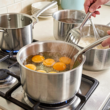 Jeśli używasz jajek: włóż jajka do zimnej wody tak, by były przykryte. Doprowadź do wrzenia na dużym ogniu. Po zagotowaniu zmniejsz ogień i gotuj 8-9 minut dla pewnego ścięcia żółtka. Po ugotowaniu przelej zimną wodą i odstaw do wystudzenia, potem obierz i przekrój na połówki.