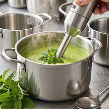 Po gotowaniu przepłucz blender natychmiast ciepłą wodą, aby resztki zupy nie zaschły. Garnki i łyżki opłucz i umyj zwykłym detergentem.